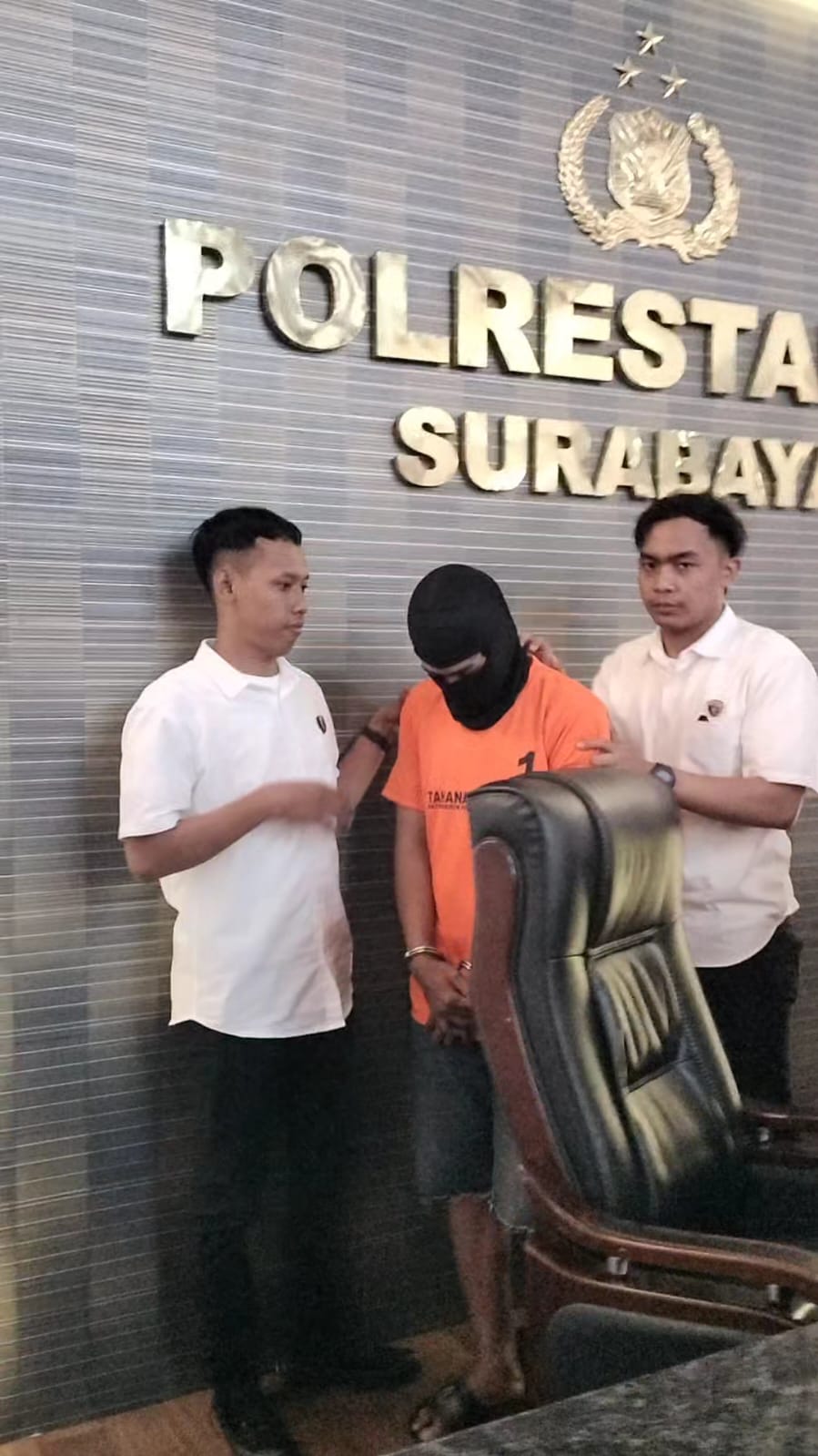 Suksesi Nasional, SURABAYA- Satuan Reserse Kriminal ( Satreskrim) Polrestabes Surabaya menangkap pelaku begal payudara inisial RB warga Jalan Tenggilis Surabaya.