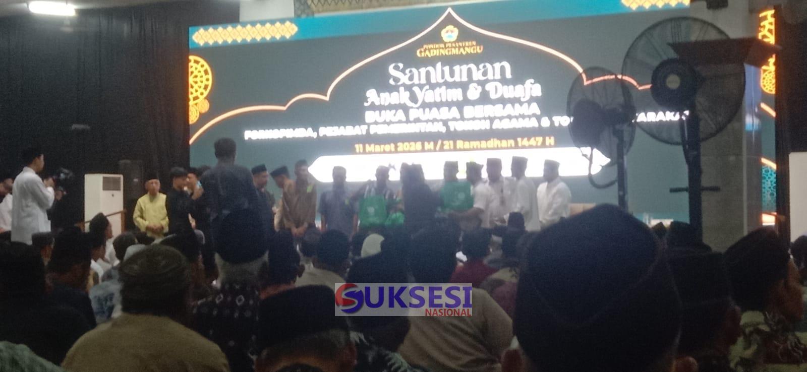 Suksesinasional.com JOMBANG – Suasana penuh kebersamaan dan kepedulian sosial terasa hangat di Pondok Pesantren Gading Mangu yang beralamat di Jl. Mbah Bay Prawinoto No.147, Desa Gading Mangu, Kecamatan Perak, Kabupaten Jombang. Pada Rabu (11/3/2026), pesantren tersebut menggelar kegiatan Santunan Anak Yatim dan Duafa sekaligus Buka Puasa Bersama yang dihadiri berbagai unsur masyarakat dan pejabat daerah.