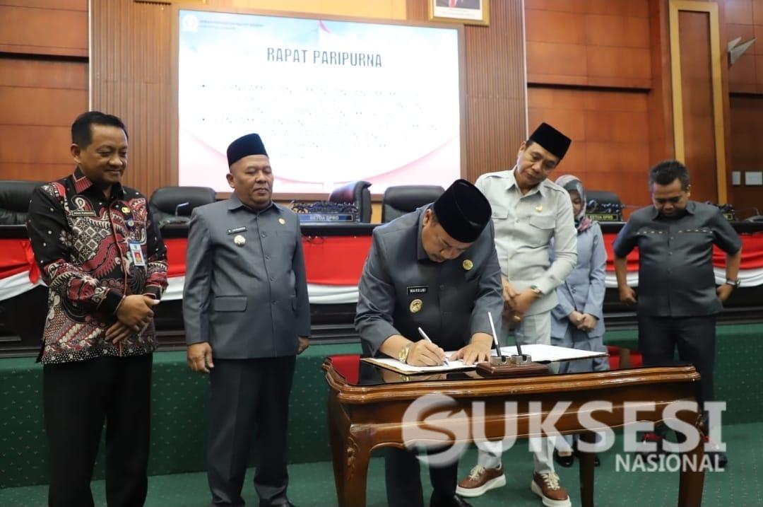 Suksesinasional.com JOMBANG– Pemerintah Kabupaten Jombang bersama Dewan Perwakilan Rakyat Daerah (DPRD) Kabupaten Jombang resmi menyepakati Rancangan Peraturan Daerah (Raperda) Inisiatif DPRD tentang Desa/Kelurahan Sadar Hukum untuk ditetapkan menjadi Peraturan Daerah (Perda). Persetujuan tersebut disampaikan langsung oleh Bupati Jombang Warsubi dalam Rapat Paripurna DPRD yang digelar di ruang rapat paripurna DPRD Jombang, Kamis (5/2/2026) pagi.
