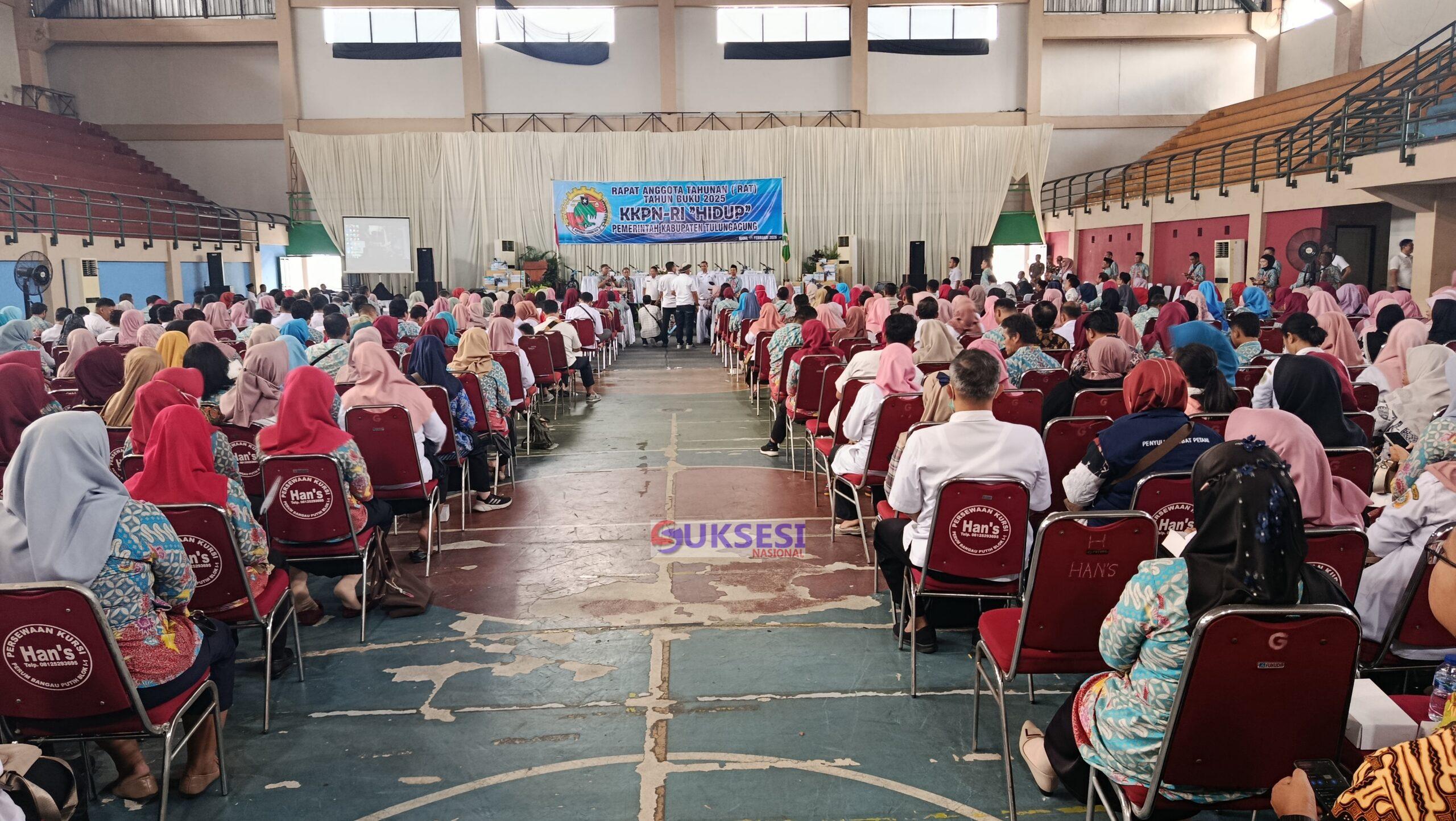 Suksesi nasional.com Tulungagung – Hari ini Rabu tanggal 11/02/2026) di selenggarakan Rapat Anggota Tahunan (RAT)Koperasi Pegawai Republik Indonesia (KPRI) Hidup Pemerintah Kabupaten Tulungagung Tahun Buku 2025 bertempat di GOR Lembupeteng, Kabupaten Tulungagung.