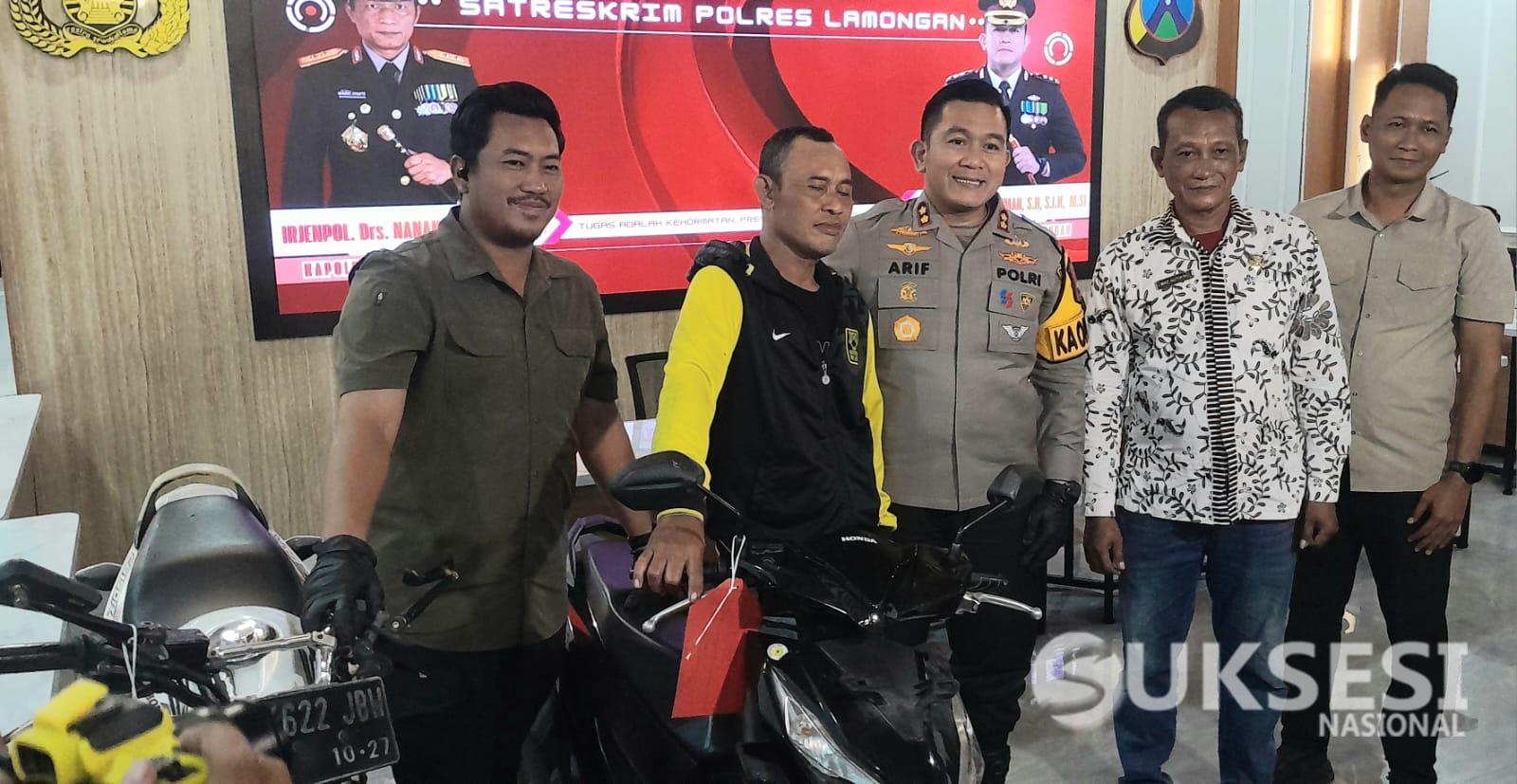 Selain tersangka petugas Satreskrim Polres Lamongan mengamankan barangbukti 2 unit motor, yakni Honda Beat milik korban, dan i unit Honda CBR milik pelaku.