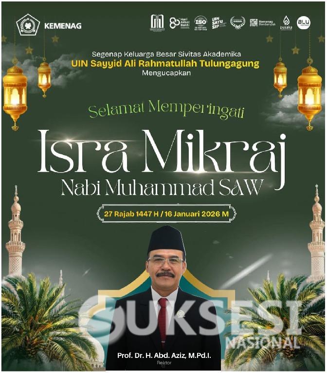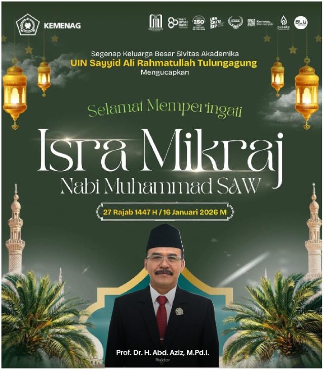 Segenap keluarga Besar sivitas Akademika UIN SATU TULUNGAGUNG mengucapkan selamat memperingati Isro Mikraj Nabi Muhammad SAW