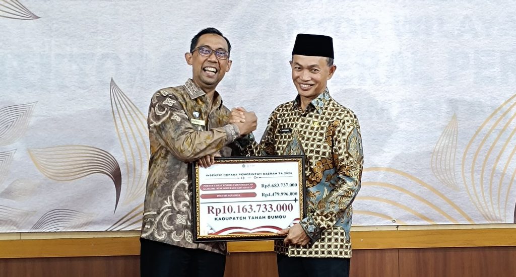 Total insentif yang di serahkan kepada pemerintah daerah Kabupaten Tanah Bumbu sebesar Rp10.163.733.000.