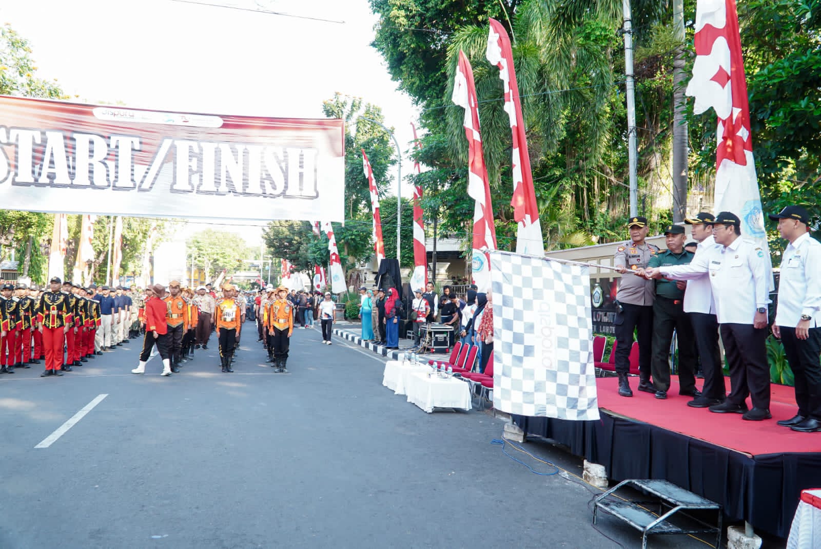 Diberangkatkan Bupati Lamongan Yuhronur Efendi di Depan Pendopo Lokatantra Kabupaten Lamongan, pada Rabu (21/8/2024), para peserta tengah mempersiapkan diri dengan formasi siap.