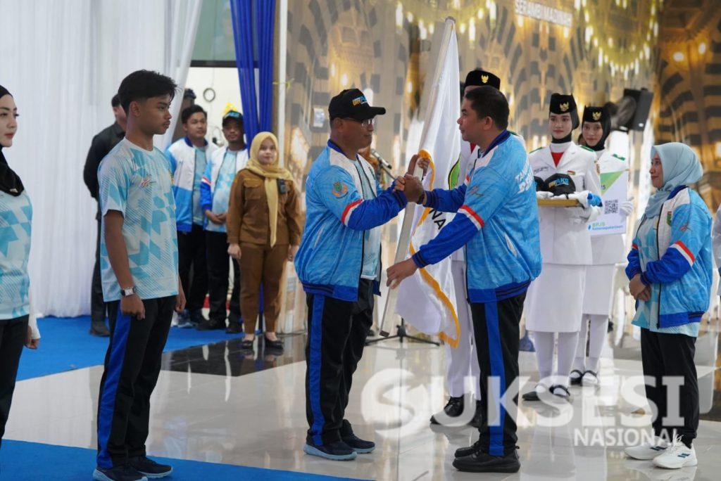 Prosesi pelepasan berlangsung penuh semangat yang digelar di Pendopo Kantor Bupati Tanah Bumbu di Batulicin, Senin (20/10/2025).
