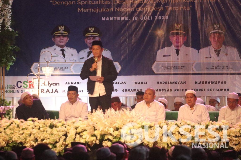 Apresiasi tersebut disampaikan pada saat Tabligh Akbar dalam rangka memperingati Hari Jadi ke-47 Desa Mantewe, Kecamatan Mantewe, Kamis (10/7/2025).