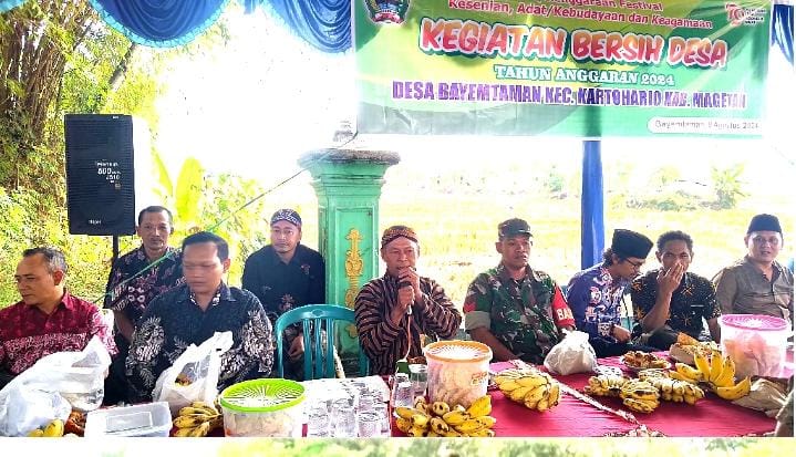 ” Kita berkumpul ini jangan salah niat, berdoa kepada Alloh SWT dan mendoakan para leluhur yang perjuangkan desa Bayemtaman, ini juga sebagai wujud syukur kita semua atas Rahmat Alloh yang di berikan, kita masih di berikan Rahmat kesehatan, Riski dan memohon di jauhkan dari pagebluk , masyarakat bisa guyub rukun” imbuhnya