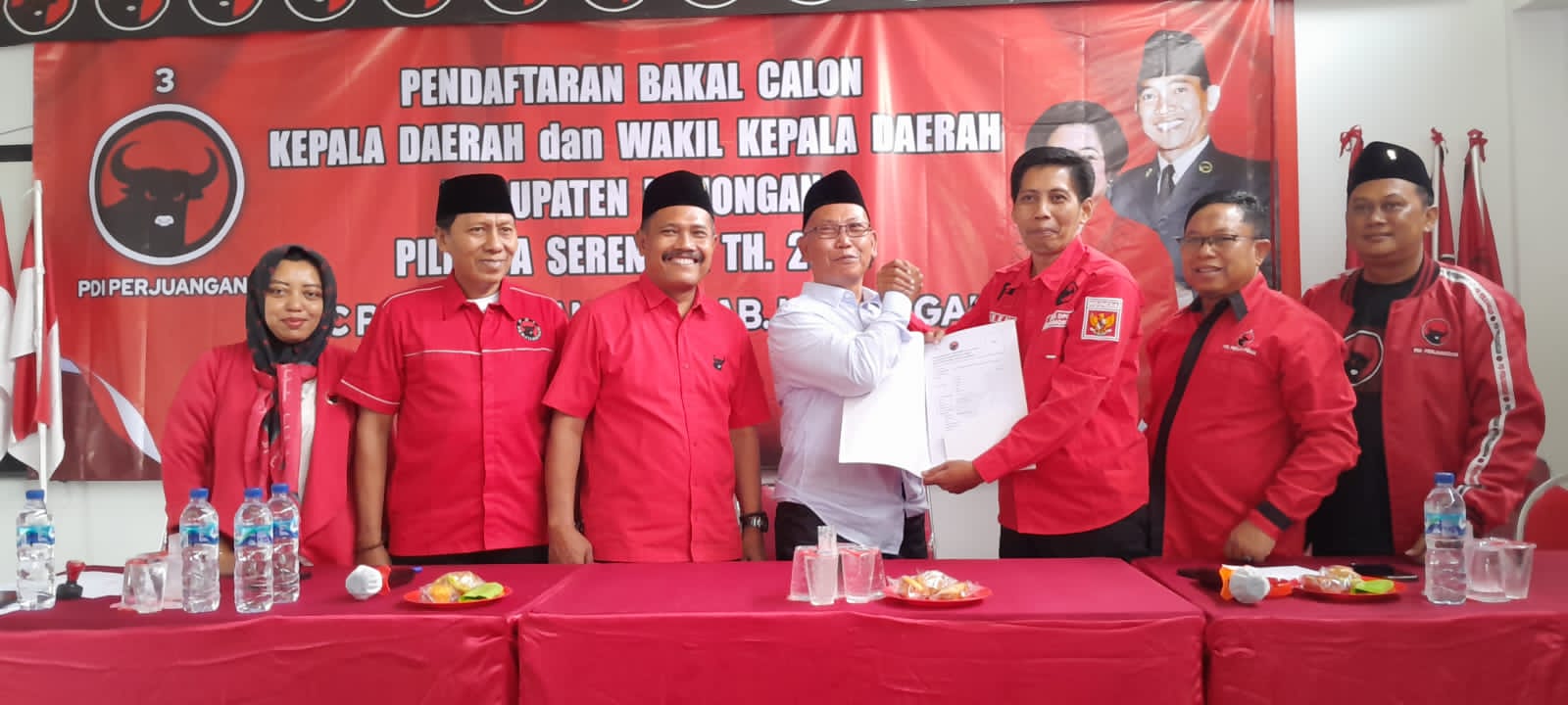 Usai mengambil formulir pendaftaran, pria keluarga dekat Tlogo Anyar,sebutan keluarga besar mantan Bupati Lamongan, Alm H.Fadeli, bergeser menuju kantor DPC PDI Perjuangan, dan disambut langsung oleh Ketua Husein dan jajaranya.