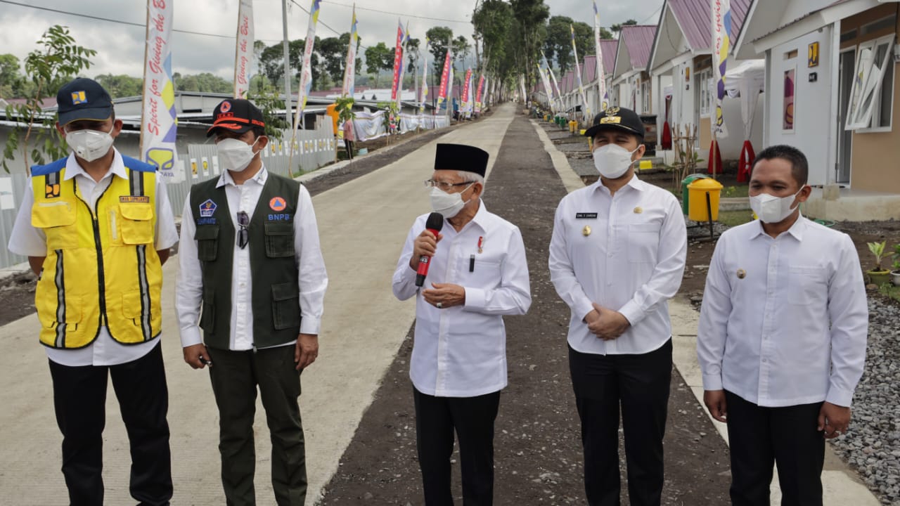 Ka BNPB, Bupati Lumajang dan Dirjen Perumahan Kementerian PUPR melaporkan kepada Wapres K.H Ma’ruf Amin terkait pembangunan rumah Hunian Sementara (Huntara) di Desa Sumber Mujur, Kecamatan Candipuro Kabupaten Lumajang, sebanyak 1.951 unit.